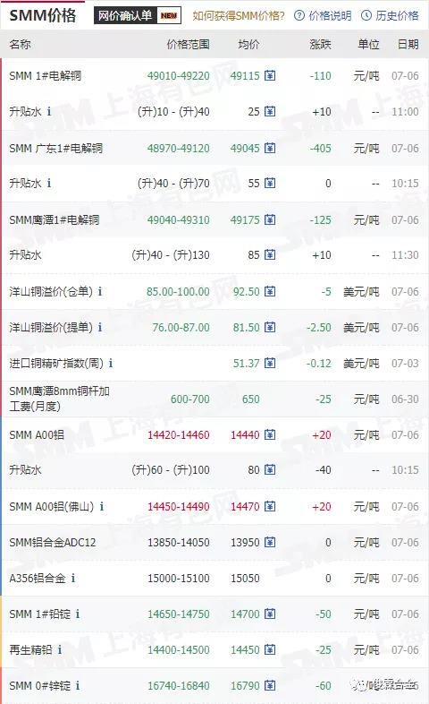 俊霖合金解讀:7月6日有色金屬行情