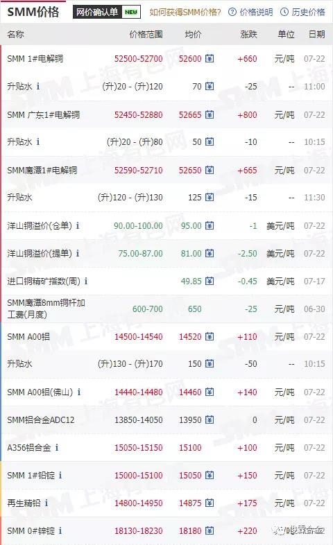 俊霖合金解讀:7月22日有色金屬行情