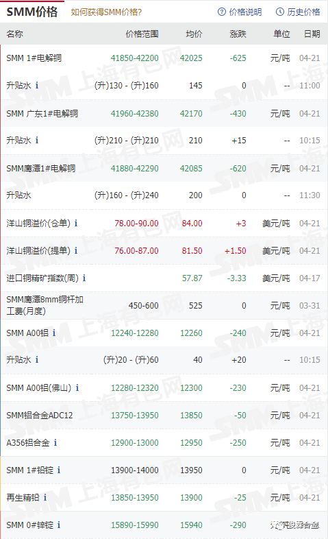 您現(xiàn)在所在位置:首頁?新聞資訊?行業(yè)新聞-俊霖合金解讀:4月21日有色金屬行情行業(yè)新聞